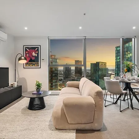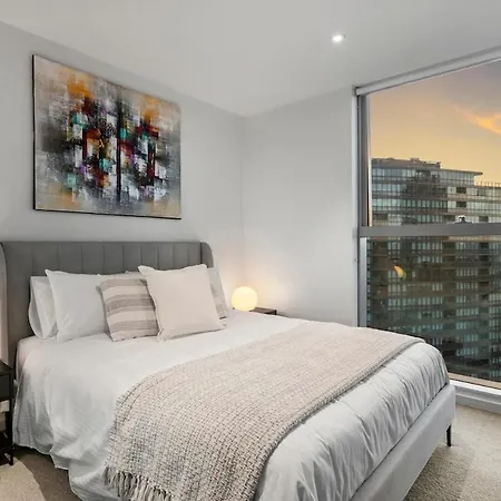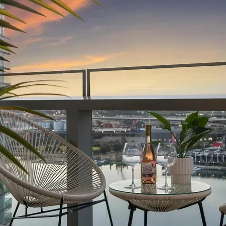 Docklands Panorama Harbour Views - Pool Gym & Parking Lejlighed ferielejlighed ligger 2 km fra St. Paul's Cathedral af Melbourne og tilbyder en indendørs pool. Denne ferielejlighed har en terrasse.