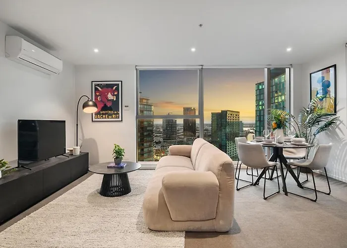 Om du vill bo i distriktet Collins Street är den här lägenheten ett bra val, inom 2 km från The Ian Potter Centre. Gästerna kommer också att hitta Eureka Tower, cirka 25 minuter bort till fots. Docklands Panorama Harbour Views - Pool Gym & Parking Lägenhet erbjuder närhet till Docklands Park, som ligger mindre än 550 meter bort.